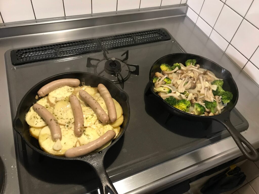 今日から仕事だったですけど、自宅で事務的な作業でしたが・・・さっさと済ませ、愛しいビンテージの釣り道具のメンテが気になり出して分解してね〜遊んでました。やっぱり古い道具が好きなんでね。なんだかんだで晩ご飯もめんどくさくなり、これまた古い鋳物の鍋ですが、スキレットで簡単に調理して終わり。明日からは真面目にしようね。